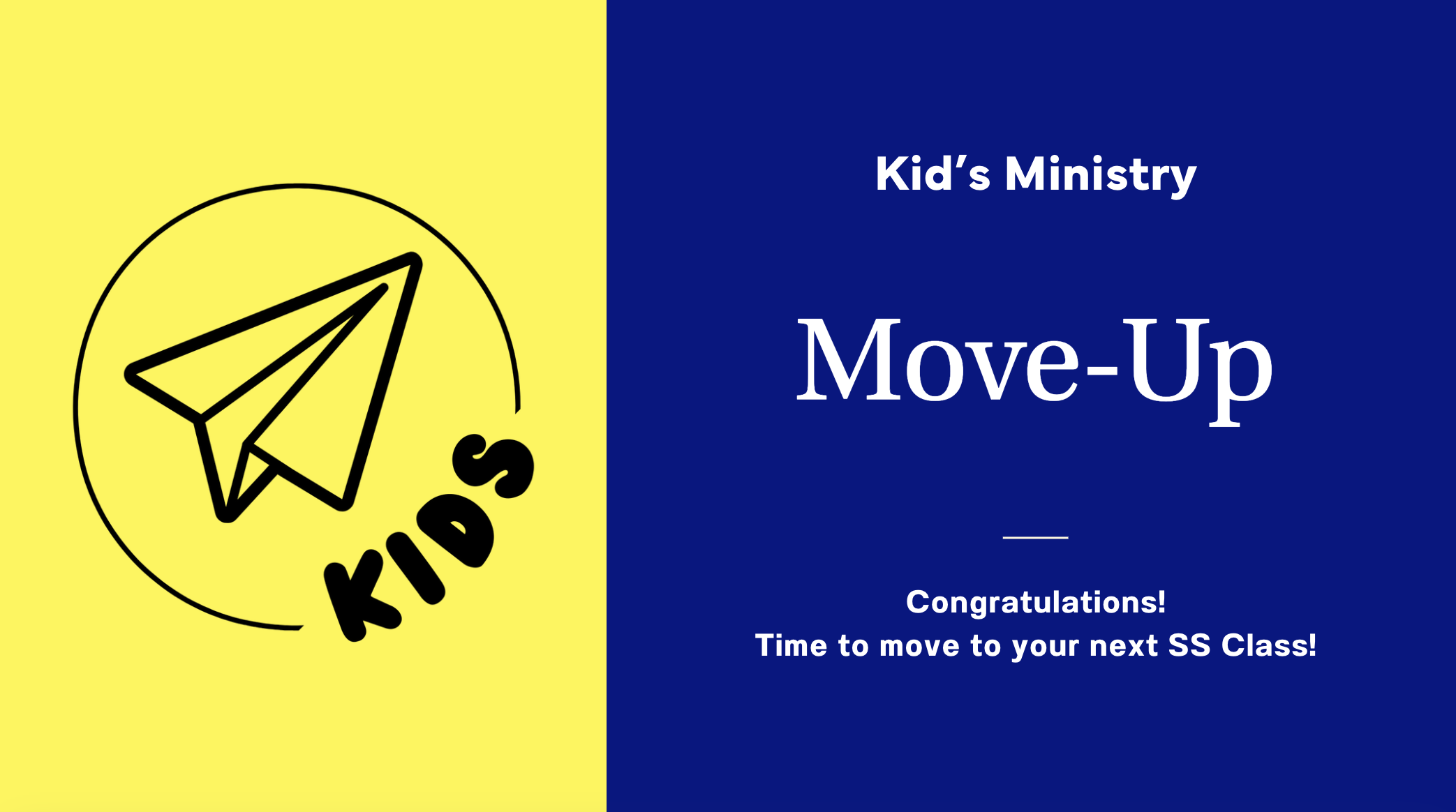 Kids will move-up to the next Sunday School class, and/or Youth Group!